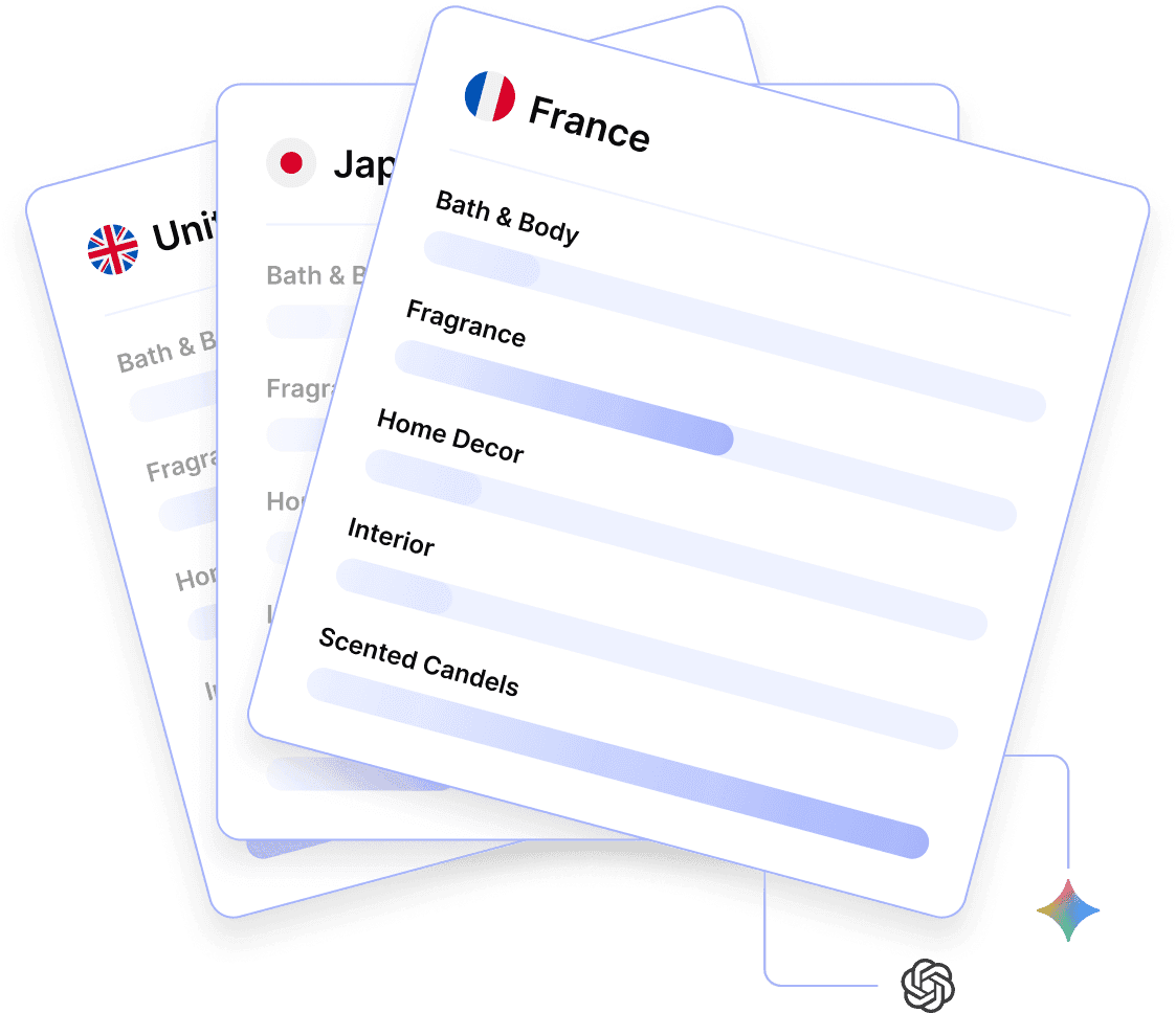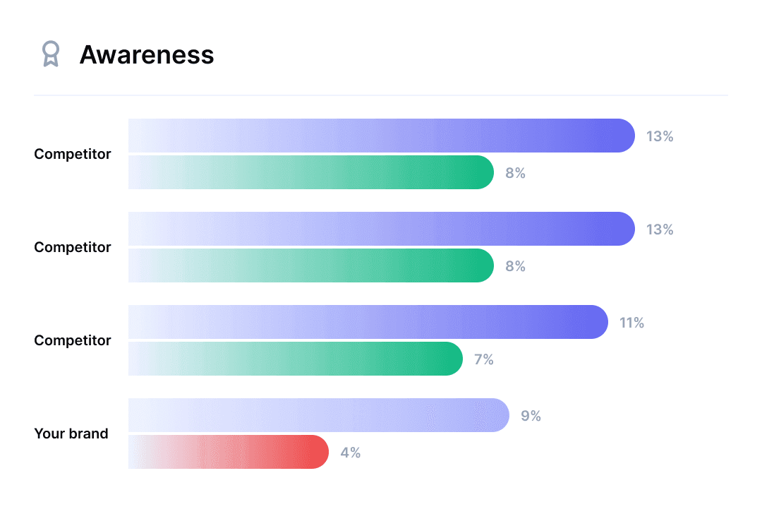 See where your brand appears in LLM responses and how prominently it ranks against competitors.